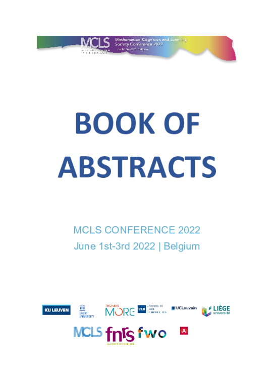MCLS 2022 took place in Antwerp, Belgium June 1-3 2022. The local organizing committee was: Bert De Smedt, Wim Fias, Wim Gevers, Marie-Pascale Noël, Mauro Pesenti, Bert Reynvoet and Jean-Philippe van Dijck, for the Numbers and the Brain network. For a list of abstracts describing presentations, please click on the title or click here: ABSTRACT BOOK